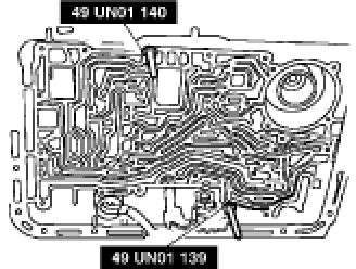 - Align the retaining pins to the holes in the solenoid clamps and press in the main control valve body wire harness guide and protector.