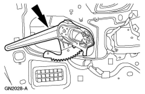 WARNING:Prior to the power window motor removal, make sure the regulator arms are in a fixed position to prevent counterbalance spring unwind. Failure to place the regulator arms in a fixed position can cause the spring to suddenly release resulting in personal injury.If necessary, remove the window glass motor.
