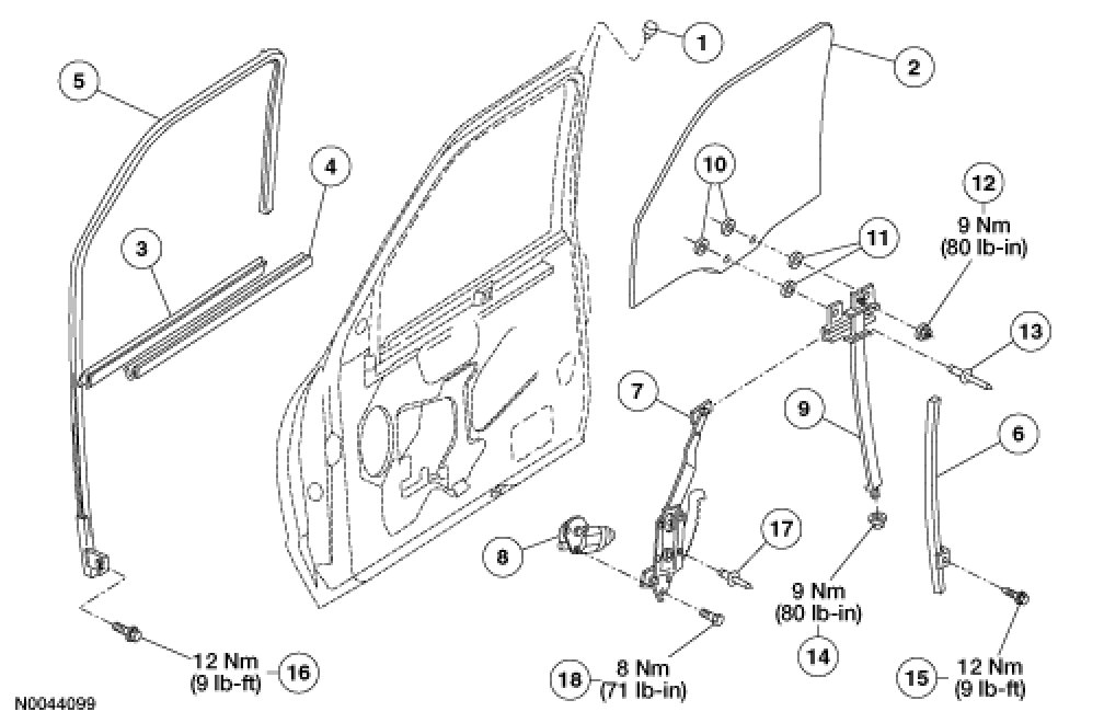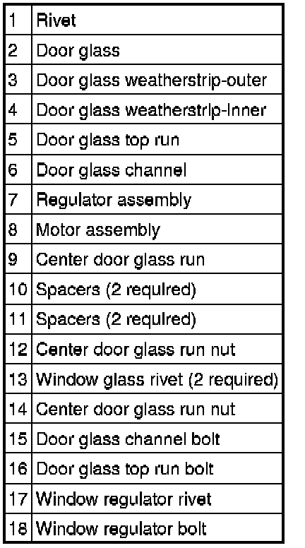 FRONT DOOR GLASS, FRAMES AND MECHANISMS - COMPONENT VIEW