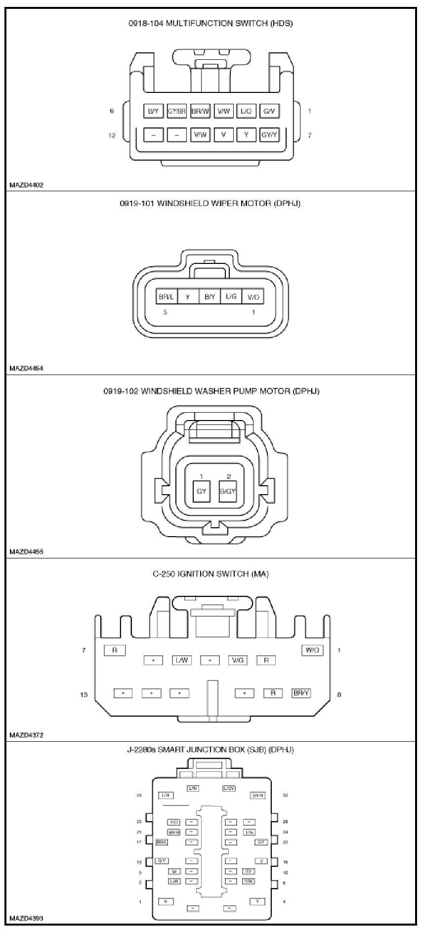 CONNECTOR END VIEWS - WIPERS AND WASHERS