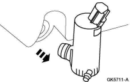 CAUTION:When removing the washer pump from the washer reservoir, be sure not to damage the rubber grommet.Remove the washer pump from the washer reservoir.