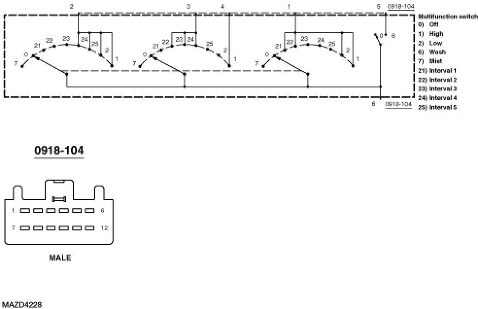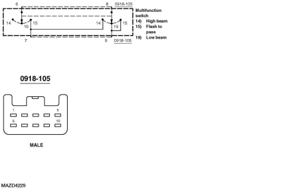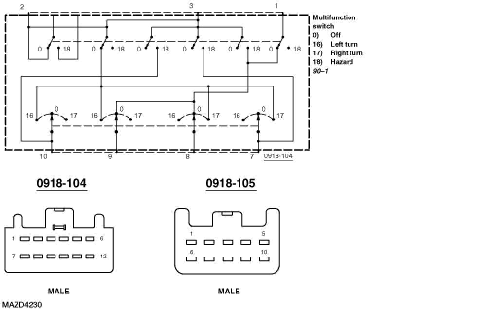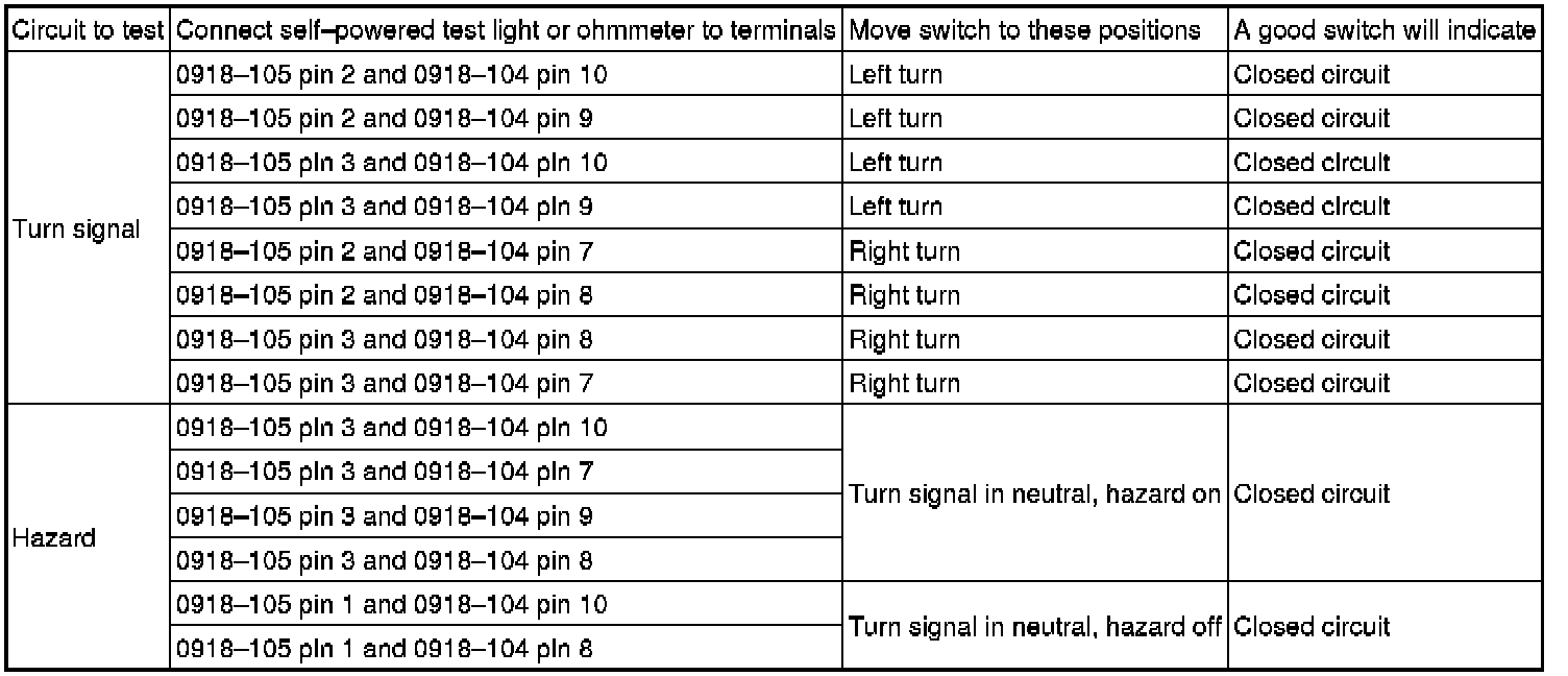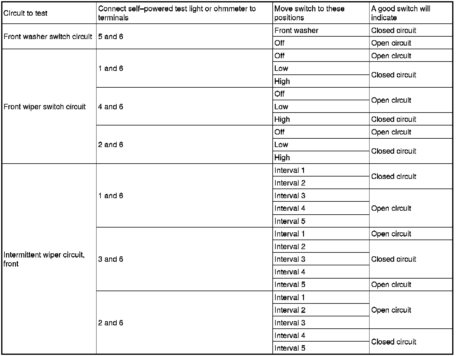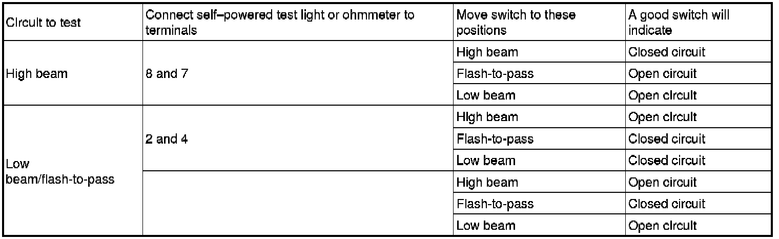 2. Inspect for continuity between the multifunction switch terminals using an ohmmeter.