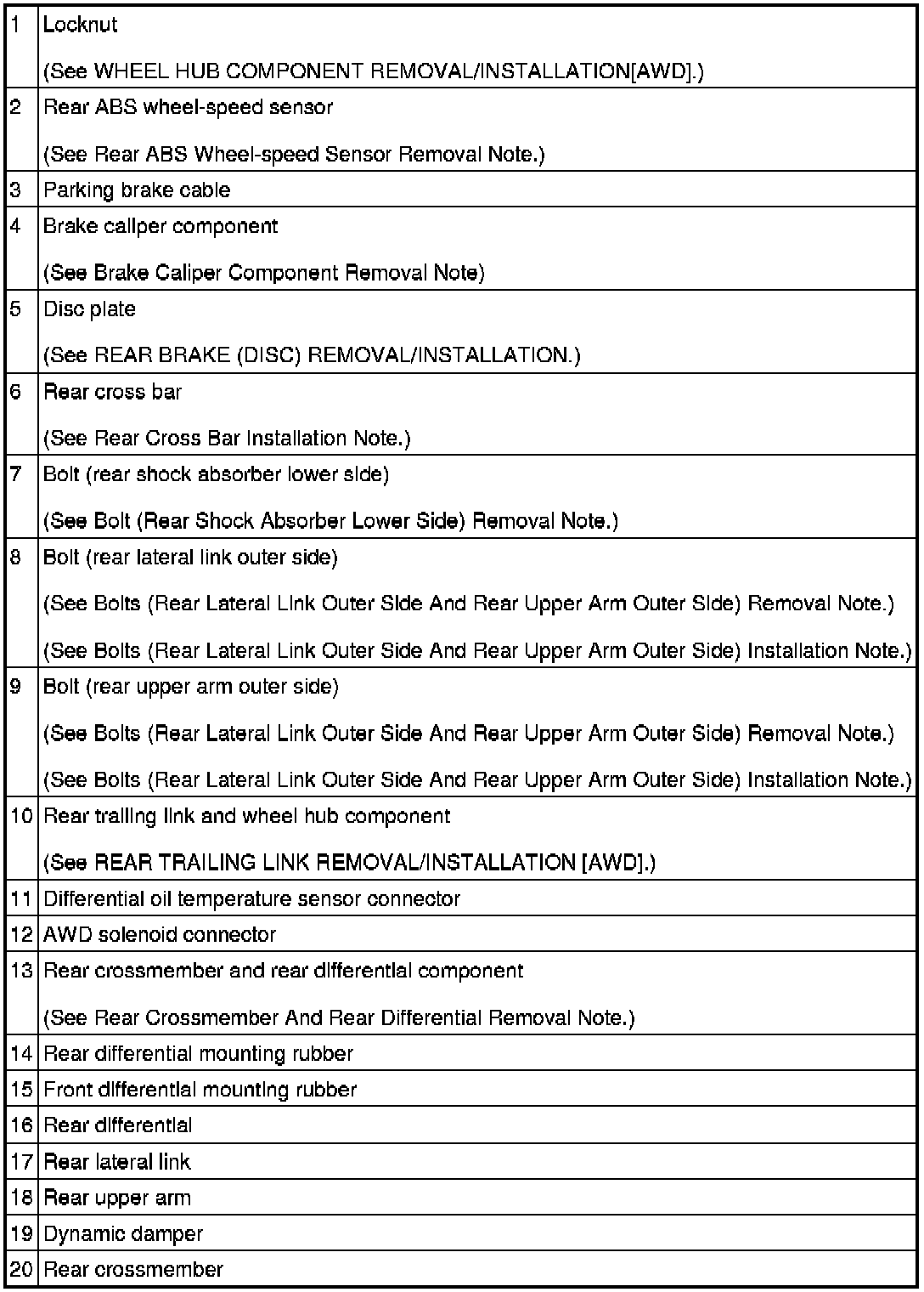 REAR CROSSMEMBER REMOVAL/INSTALLATION [AWD]