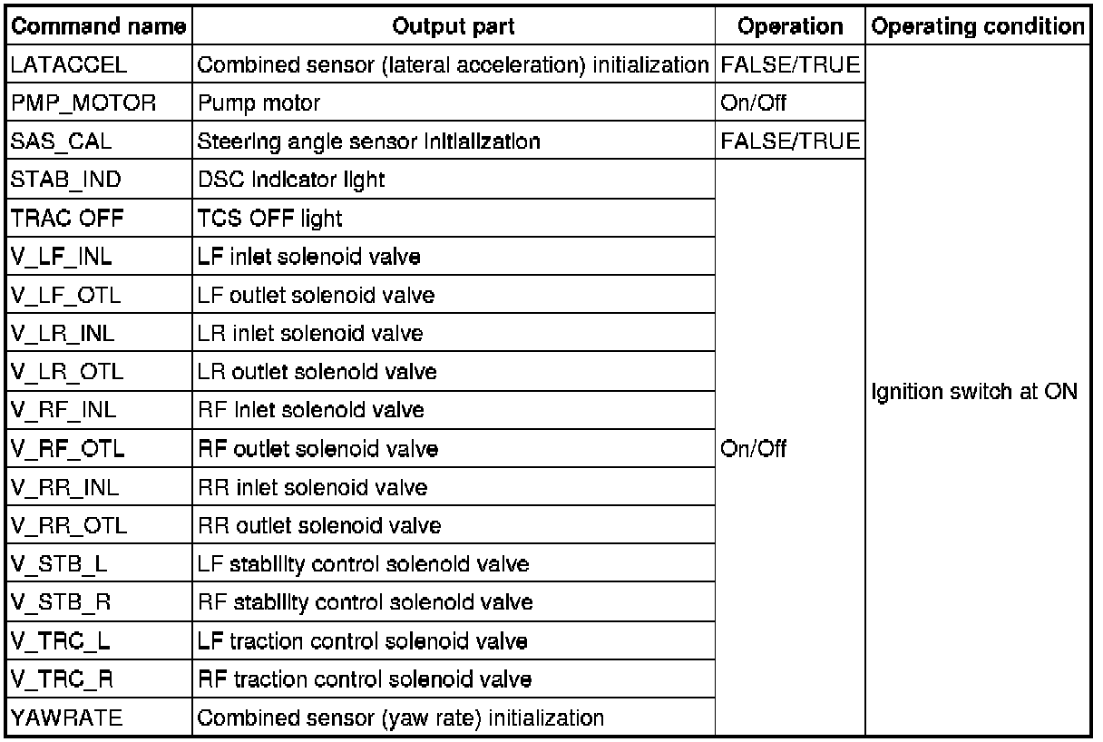 - If the operation of output parts cannot be verified after the active command mode inspection is performed, this could indicate the possibility of an open or short circuit, sticking, or operation malfunction in the output parts.