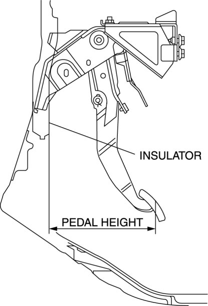 1. Measure the distance from the center of the upper surface of the pedal pad to the insulator and verify that it is as specified.