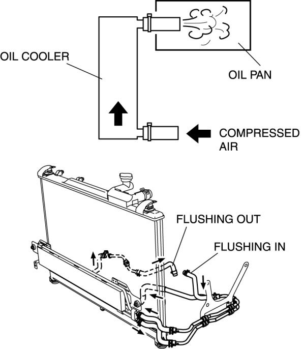 7. If foreign material such as metal fragments or clutch facing remains even after the oil cooler is flushed repeatedly, replace the oil cooler (radiator).