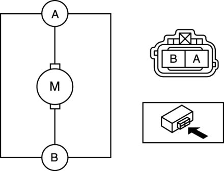 1. Connect battery positive voltage to windshield washer motor terminal A and terminal B to ground.