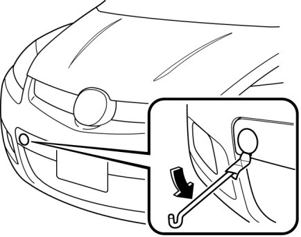 - If the tiedown eyelet is not securely tightened, it may loosen or disengage from the bumper when tying down the vehicle. Make sure that the tiedown eyelet is securely tightened to the bumper.