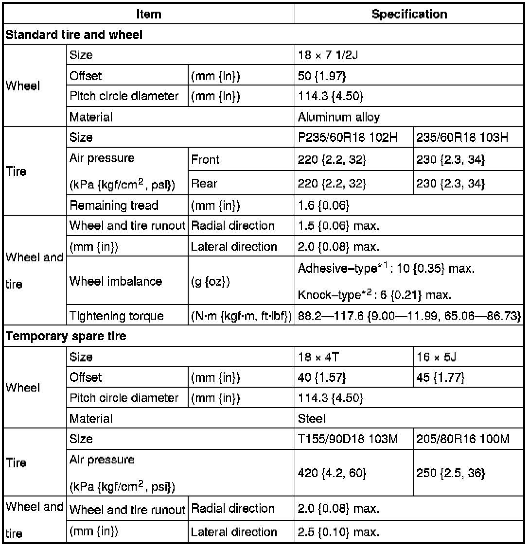 One balance weight: 60 g {2.12 oz} max. If the total weight exceeds 100 g {3.53 oz} on one side, rebalance after moving the tire around on the rim. Do not use three or more balance weights.