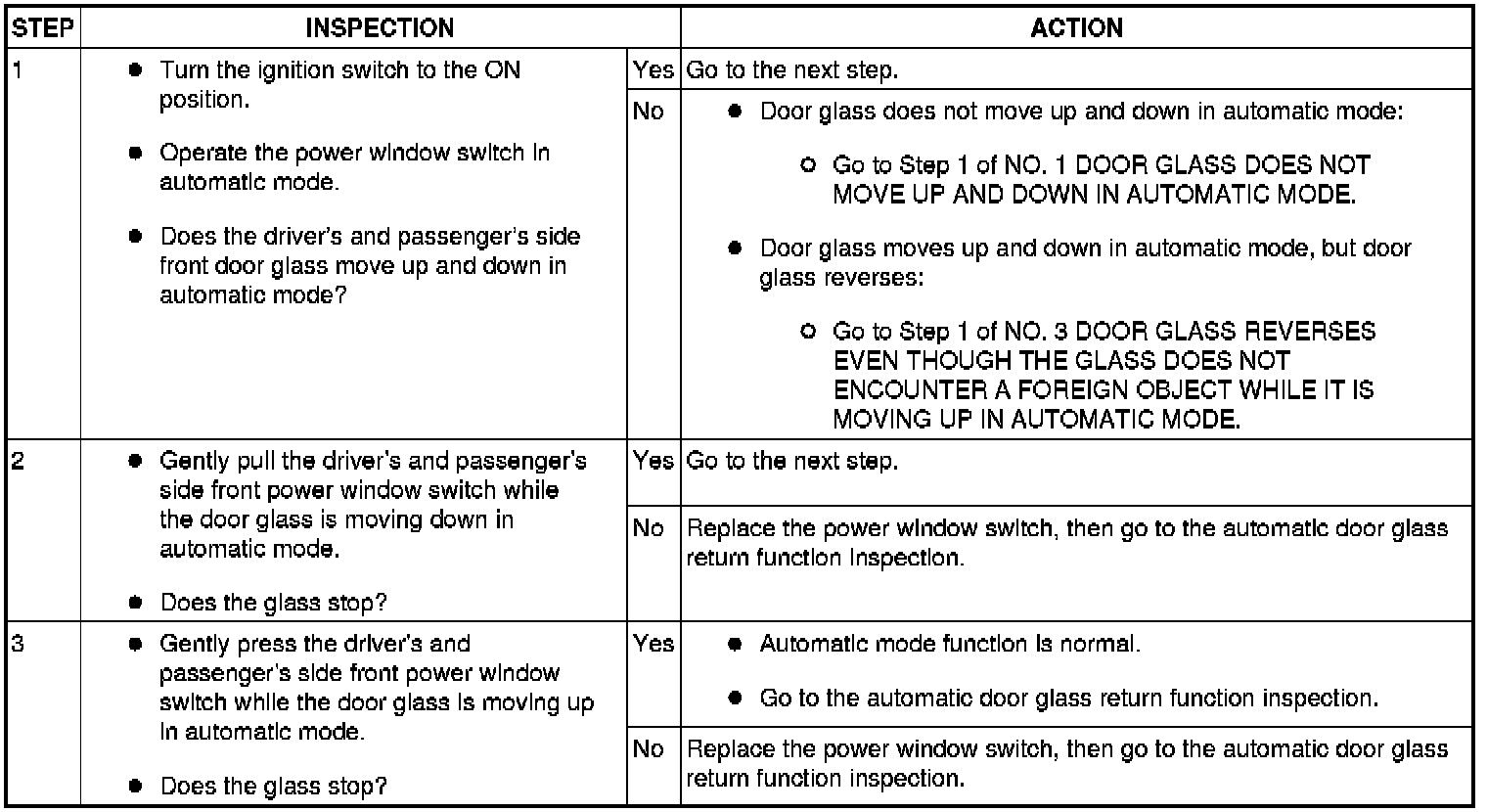 Automatic Door Glass Return Function Inspection
