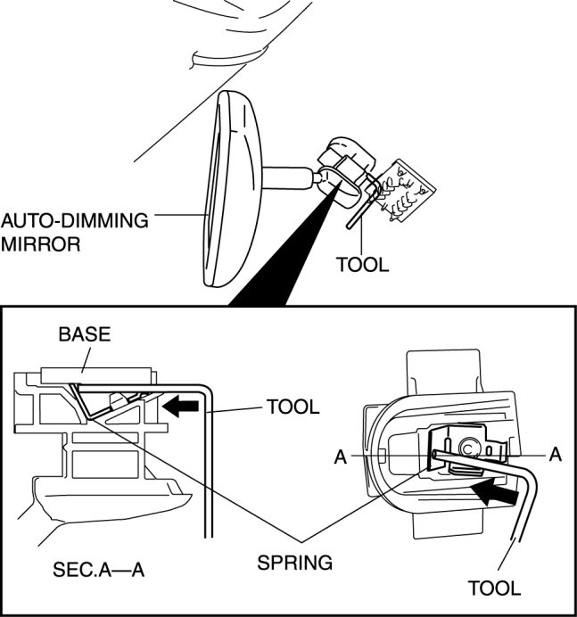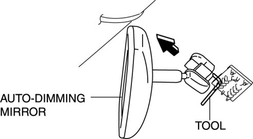 - When removing the rearview mirror, it may hit the headliner and cause a damage. Hold the rearview mirror with hands and be careful not to contact it with the headliner.