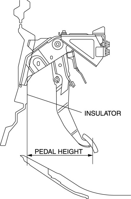 1. Measure the distance from the center of the upper surface of the pedal pad to the insulator and verify that it is as specified.