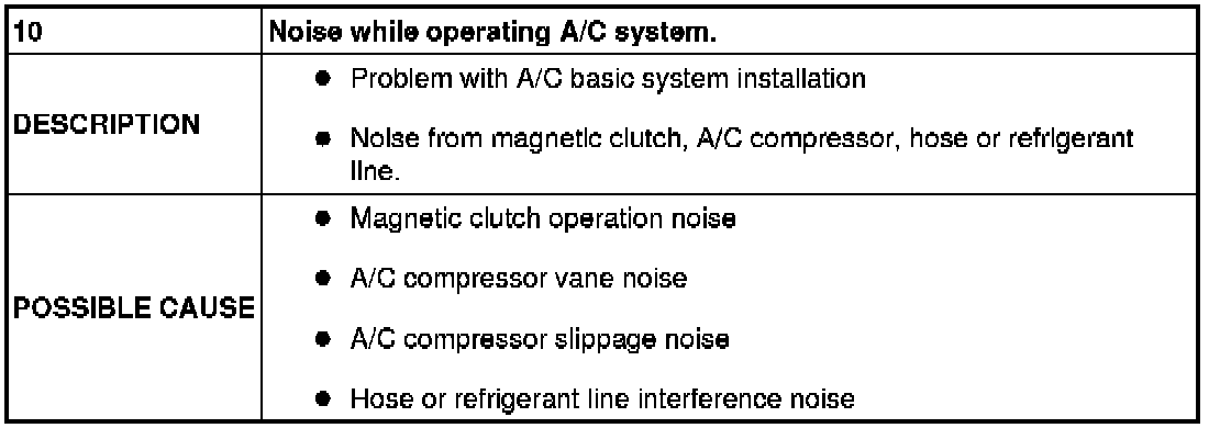 No.10 Noise While Operating A/C System.