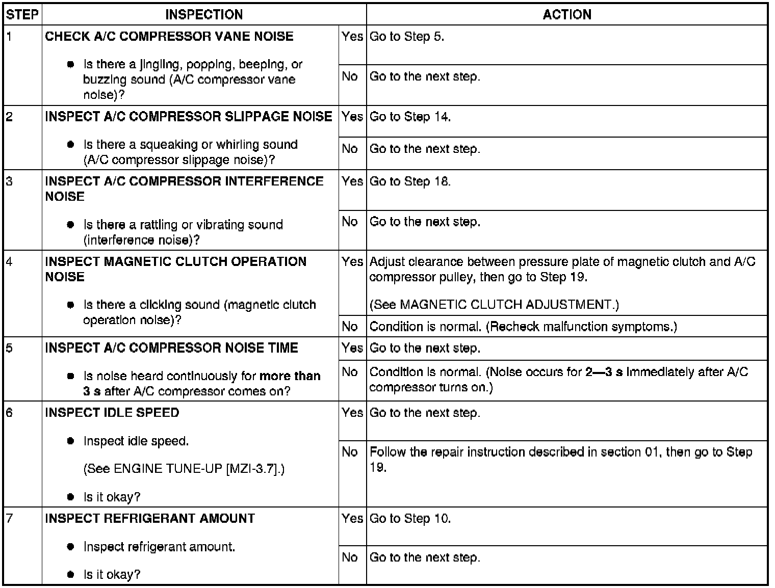NO.10 NOISE WHILE OPERATING A/C SYSTEM.