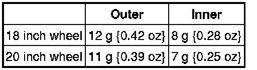 - One balance weight must not exceed 60g {2.12 oz}, and a total of 2 balance weights must not exceed 100g {3.53 oz}.