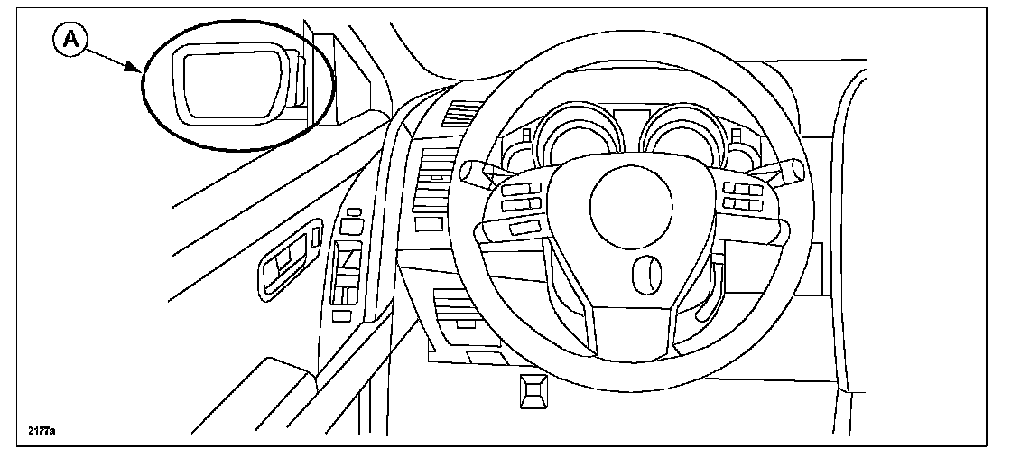 Some vehicles may exhibit a vibration on driver-side rear view mirror (A) when driving on a rough road. During this condition, customers may complain that the rear view mirror is difficult to see. Repair procedures have been developed to reduce vibration concern. Use REPAIR PROCEDURE "A" and "B" on vehicles with driver-side rear view mirror turn lamp. Use REPAIR PROCEDURE "A" and "C" on vehicles without driver-side rear view mirror turn lamp.