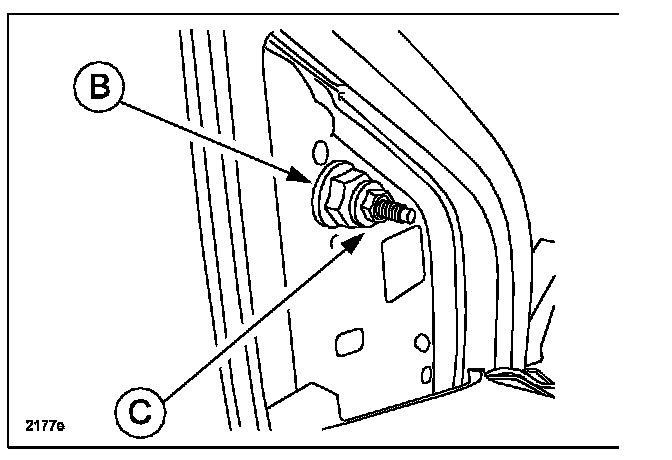 5. Fit a 17 mm flange nut (B) from the inside, then secure it with another 10 mm flange nut (C).