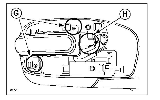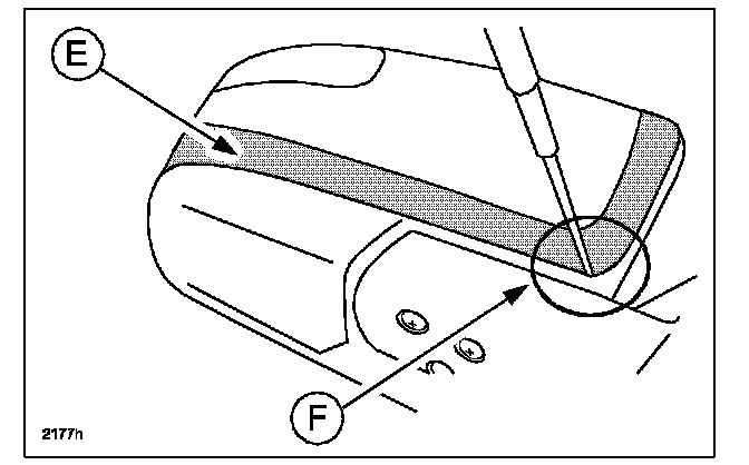 Remove the mirror housing with caution by using a thin flat screwdriver (F).