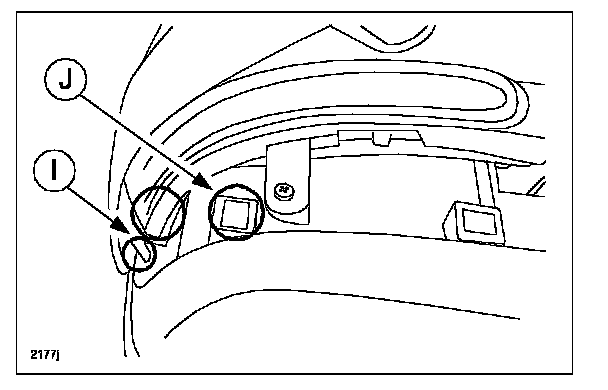 Fit the guide of mirror housing into the mirror body first (I), and then fit the fitting detent (J).