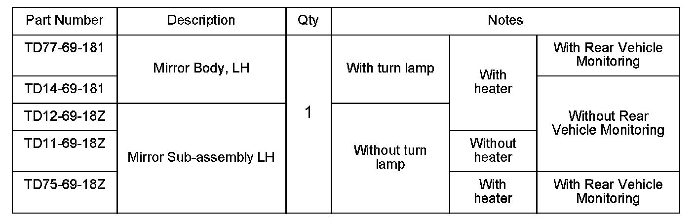 4. Replace the mirror body with replacement part from PART INFORMATION table.