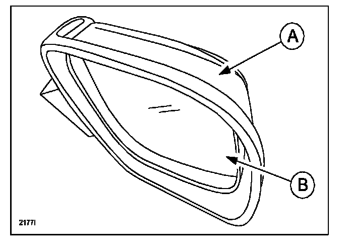 ^ Replace rear view mirror sub-assembly on vehicles without turn lamp [mirror body (A) and mirror glass (B)].