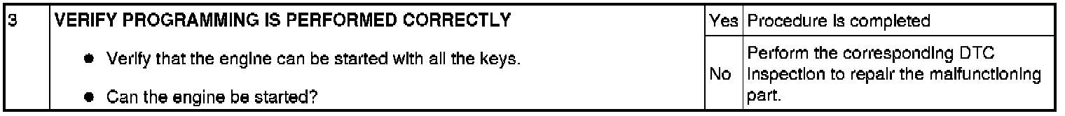 Immobilizer System-Related Parts Service and Programming Procedure Table