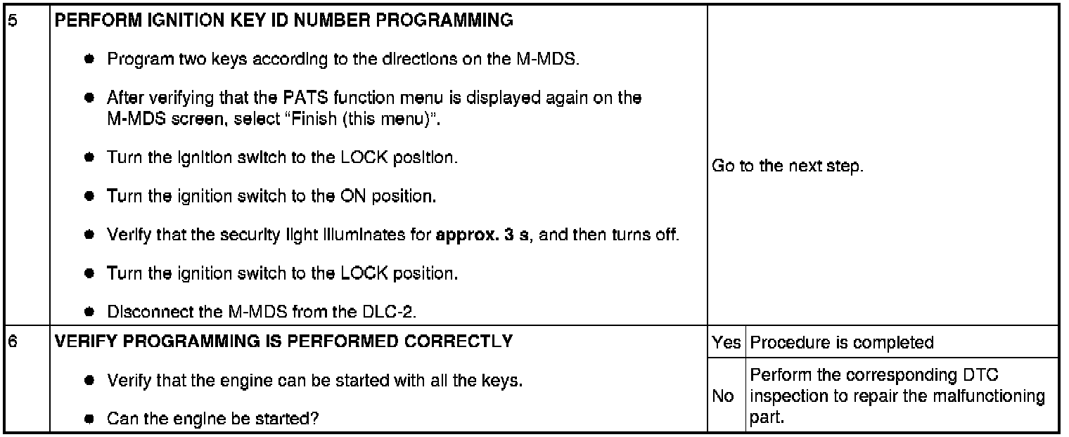 No.6 Programming Procedure Due to Simultaneous Replacement of Immobilizer System-related Parts (PCM and Keyless Control Module)
