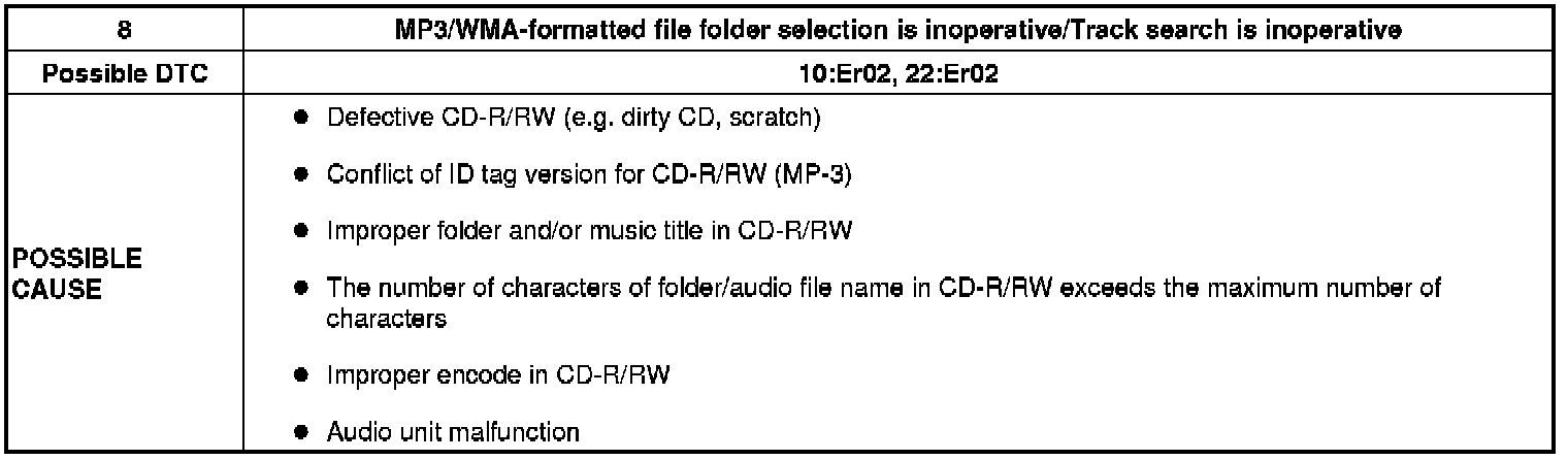 No.8 MP3/WMA-Formatted File Folder Selection Is Inoperative/Track Search Is Inoperative [CD Player/Changer]