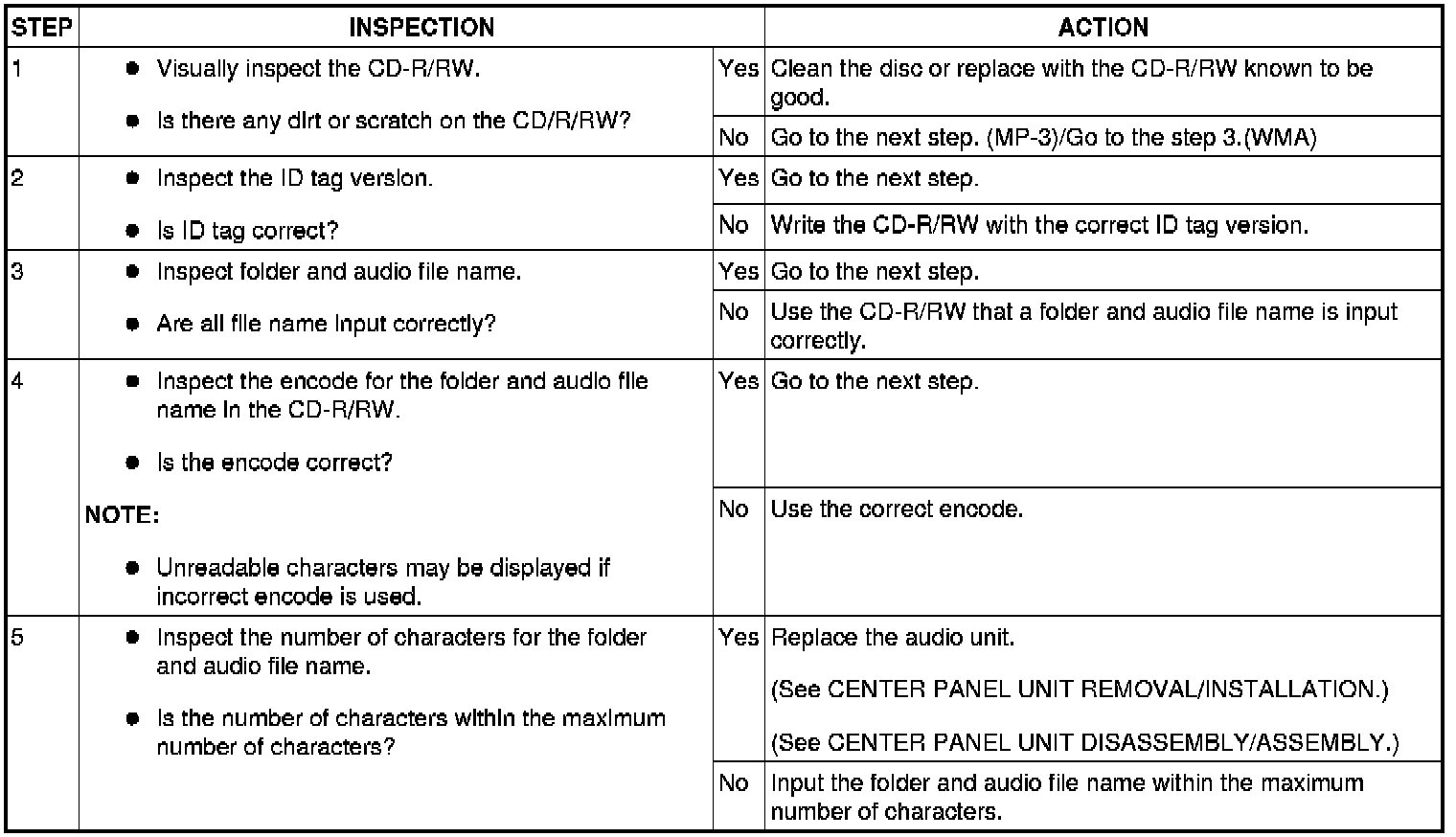 NO.8 MP3/WMA-FORMATTED FILE FOLDER SELECTION IS INOPERATIVE/TRACK SEARCH IS INOPERATIVE [CD PLAYER/CHANGER]