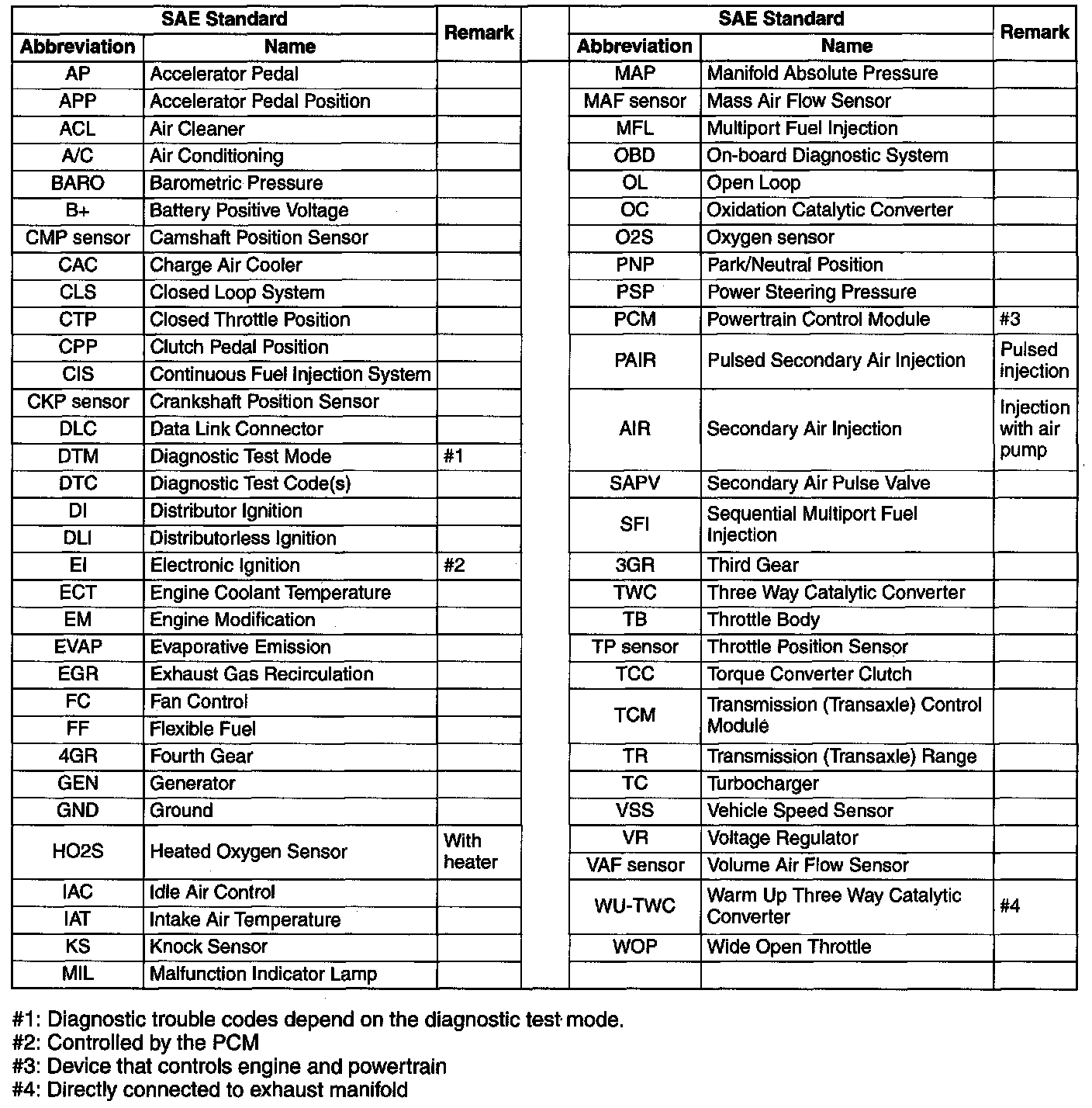 In accordance with new regulations, SAE (Society of Automotive Engineers) standard names and abbreviations are now used in this manual. The table below lists the names and abbreviations that have been used in Mazda manuals up to now and their SAE equivalents.