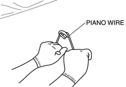 Use a long sawing action to spread the work over the whole length of the piano wire to prevent it from breaking.Do not pull too hard to prevent damage to windshield.