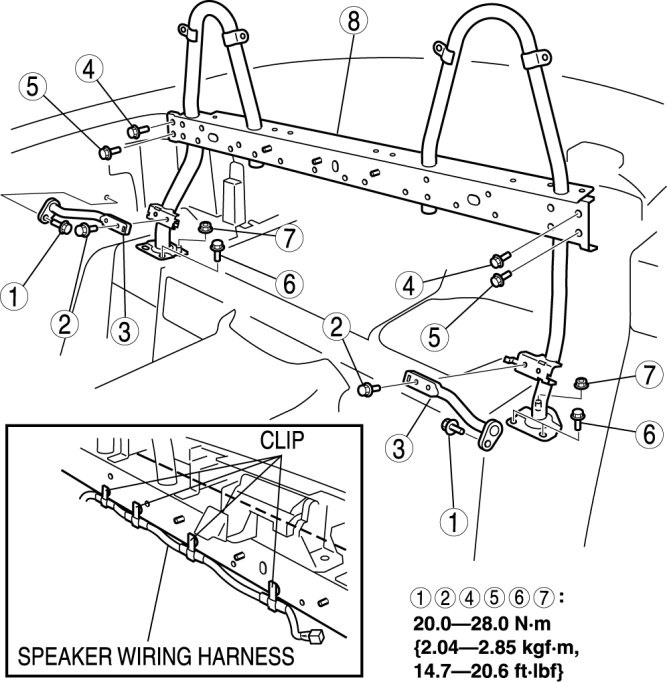 - 20.0-28.0 Nm {2.04-2.85 kgf-m, 14.7-20.6 ft-lbf}
