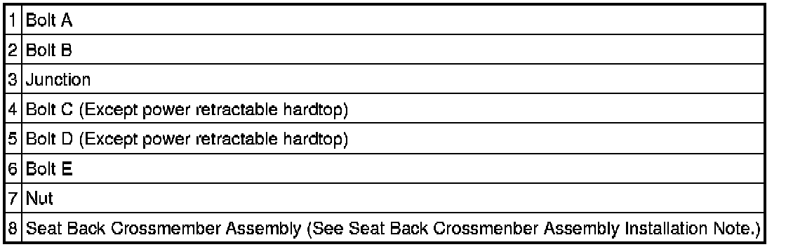 - If the seat back crossmember component is removed with the power retractable hardtop fully opened, it may contact the middle roof and damage the roof. Half open the power retractable hardtop before removing the seat back crossmember component.