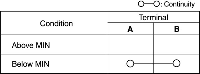 Inspect for continuity according to fluid level between the brake fluid level sensor terminals.