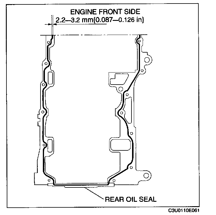 1. Apply a continuous bead of silicone sealant to the oil pan as indicated in the figure.