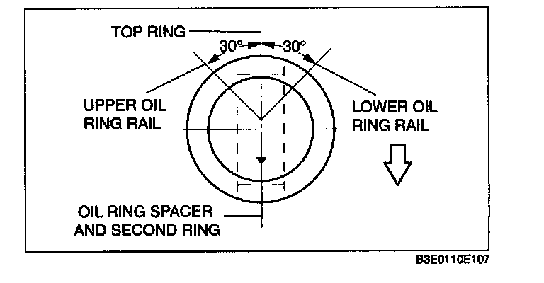 Position the end gap of each ring as indicated in the figure.