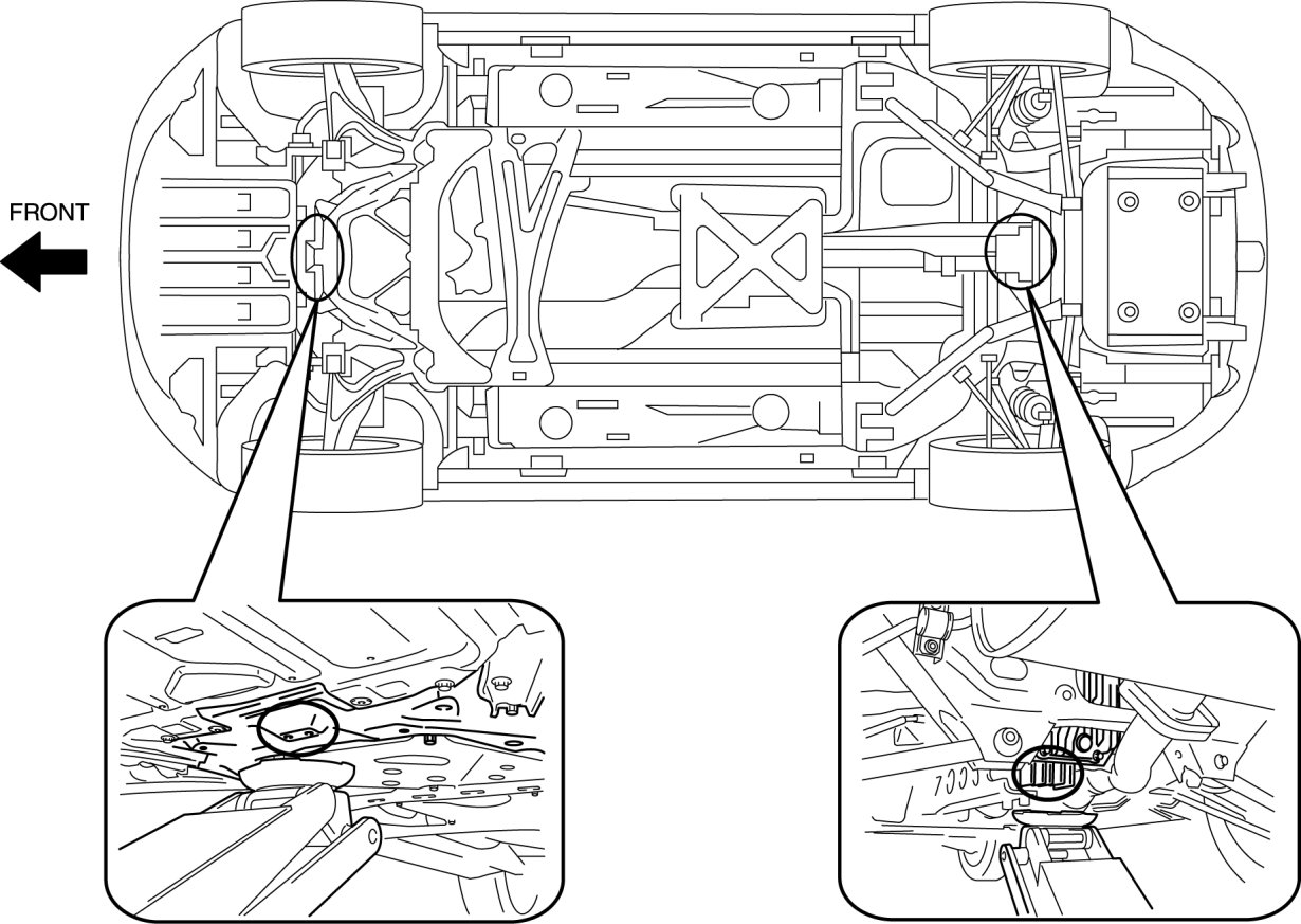 - To prevent obstruction between the jack body and front bumper when the jack body is inserted, use a low-floor type jack.