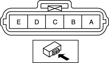 4. Verify that the resistance between MAF/IAT sensor terminals D and E is within the specification.