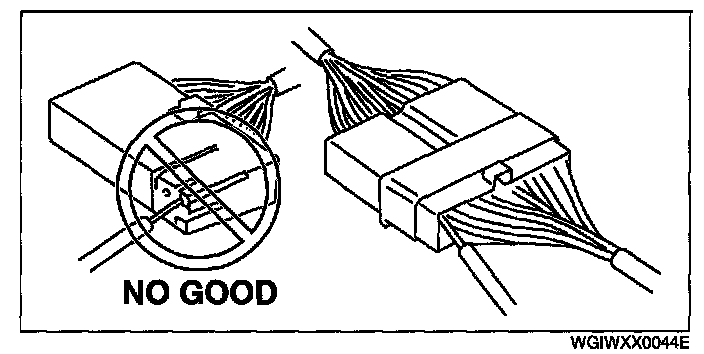 - Inspect the terminals of waterproof connectors from the connector side since they cannot be accessed from the wiring harness side.