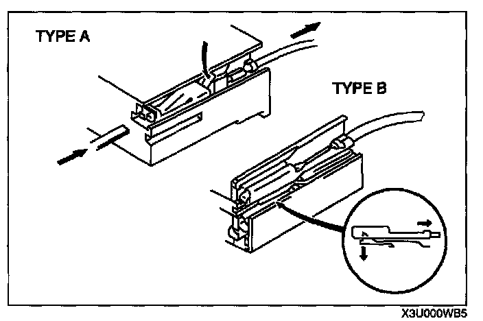 - To prevent damage to the terminal, wrap a thin wire around the tester probe before inserting into terminal.