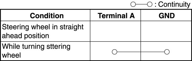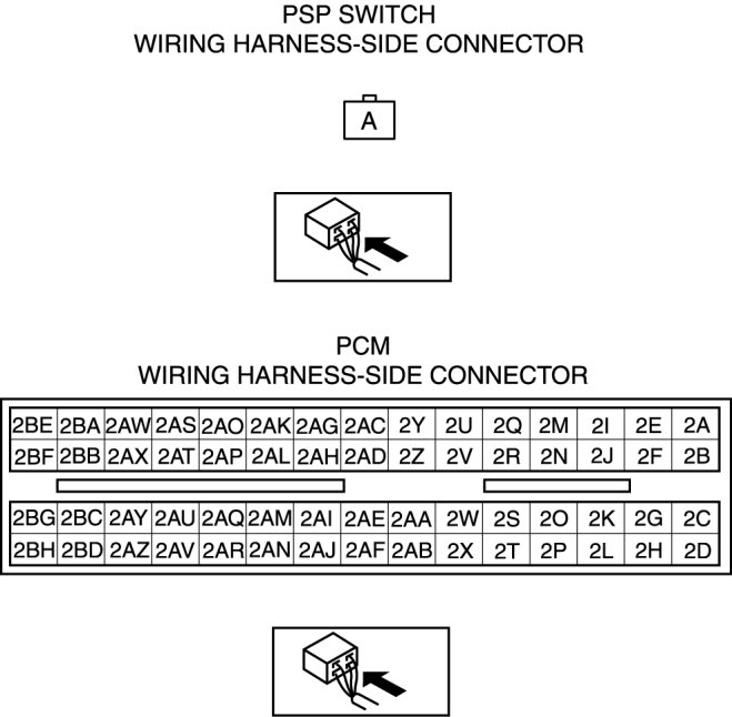 4. Verify that the continuity between PSP switch terminal A and body ground is as indicated in the table.
