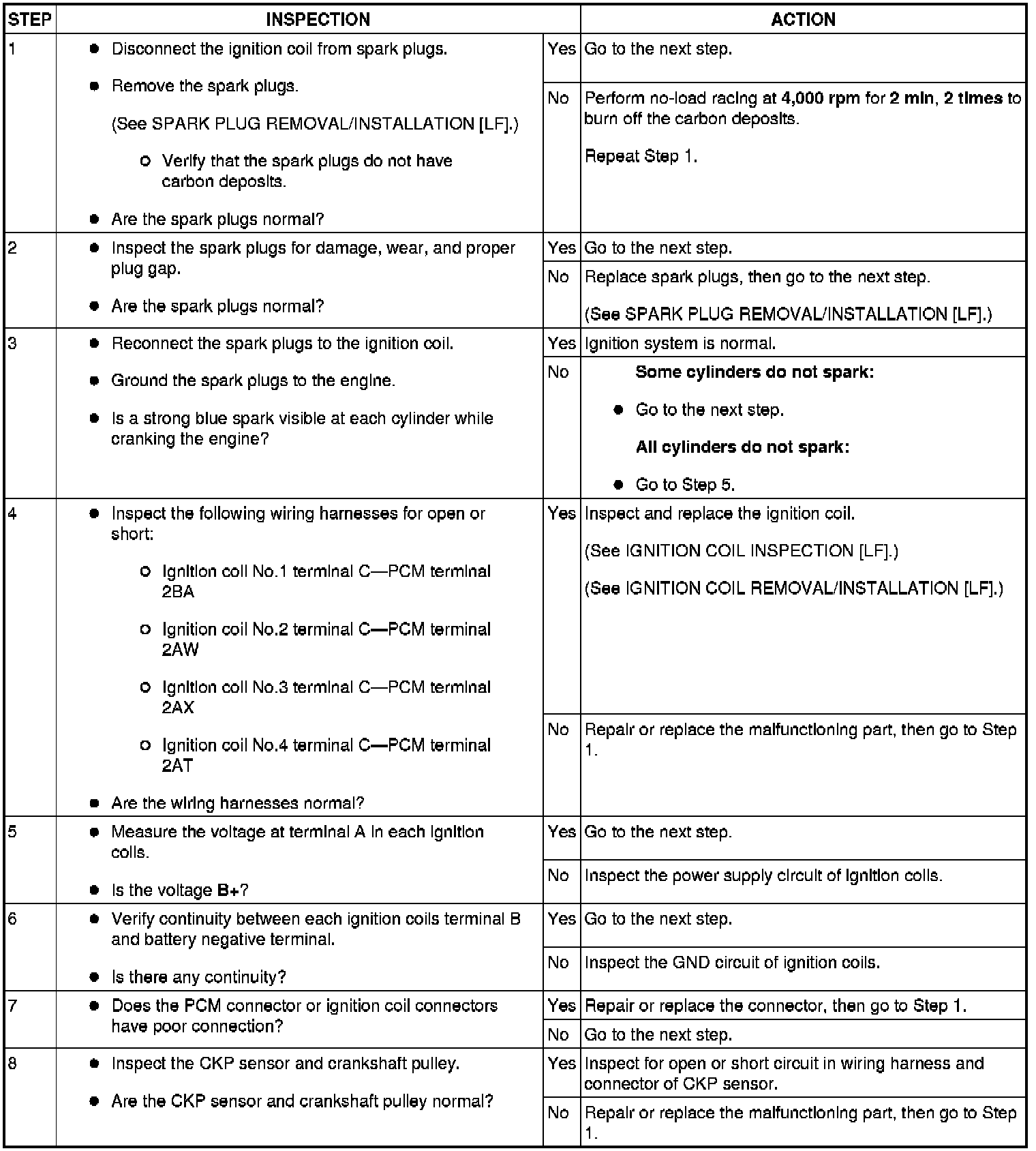 3. Inspect the ignition system in the following procedure.