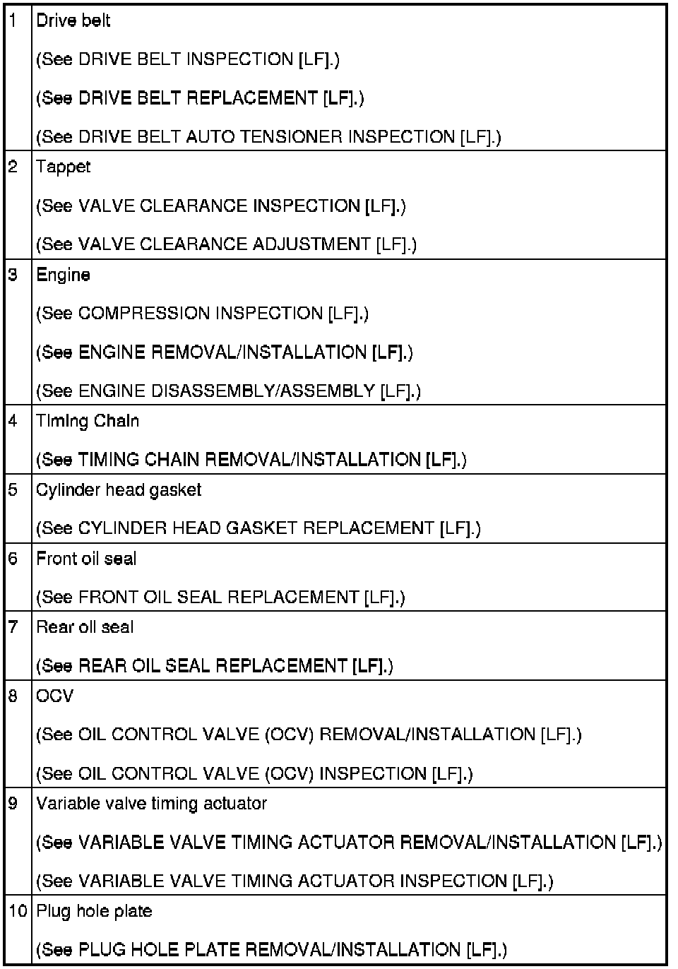 ENGINE LOCATION INDEX [LF]