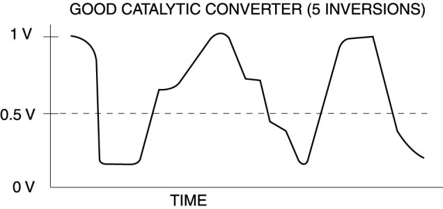 8. Count the number of times (inversions) that the upstream HO2S graph line actually crosses the 0.5 V line.