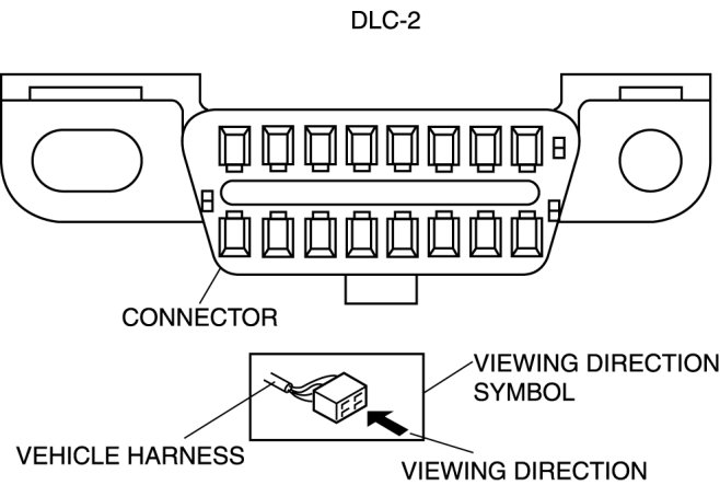 When it is necessary to show the terminal side of vehicle harness-side connectors, such as the following connectors, the viewing direction is from the terminal side.