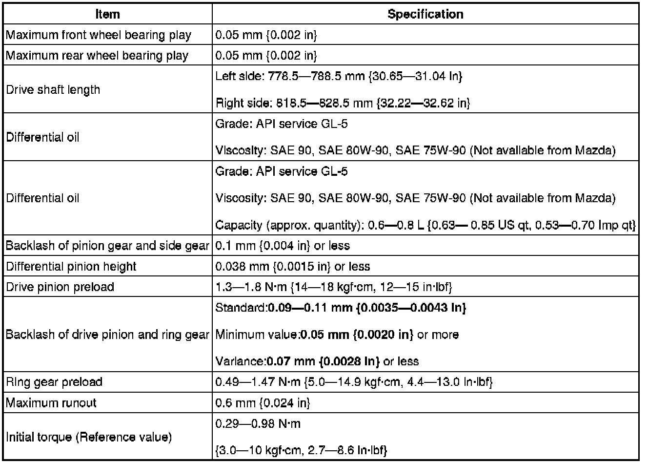 DRIVELINE/AXLE TECHNICAL DATA