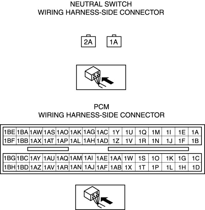 - Neutral switch terminal 2A and PCM terminal 1X