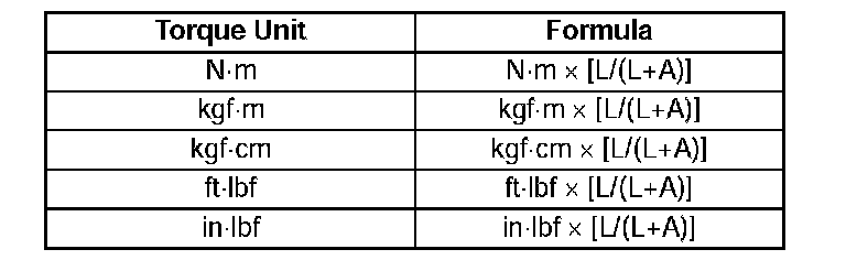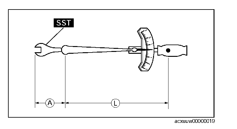 When using a torque wrench-SST or equivalent combination, the specified torque must be recalculated due to the extra length that the SST or equivalent adds to the torque wrench. Recalculate the torque by using the following formulas. Choose the formula that applies to you.
