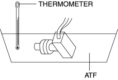 2. Place the TFT sensor and a thermometer in ATF as shown in the figure, and heat the ATF gradually.