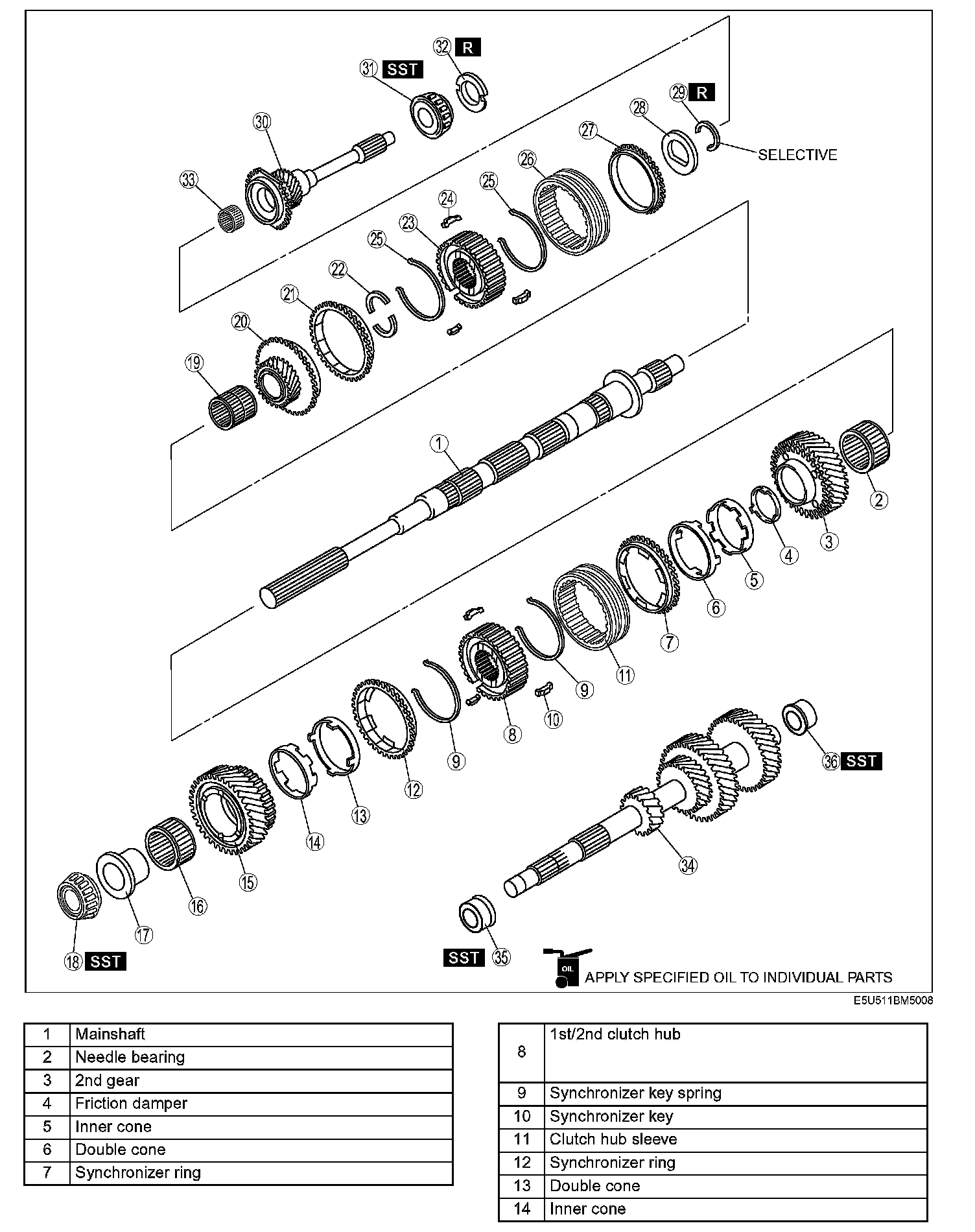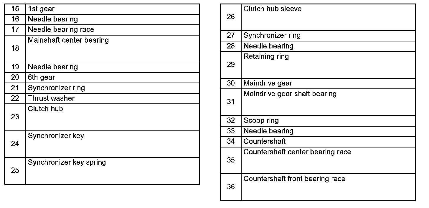 1ST/2ND Gear Component, 5TH/6TH Gear Component and Countershaft Assembly (Part 1):